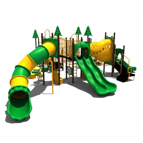 Minimo playgrounds offer you features such as a slightly smaller footprint than standard equipment. This smaller footprint accommodates smaller play spaces with more activities without sacrificing safety or durability. In addition to providing big play in smaller spaces, you will also enjoy lower equipment cost, shipping cost, and surfacing cost that one experiences with standard-sized playgrounds.