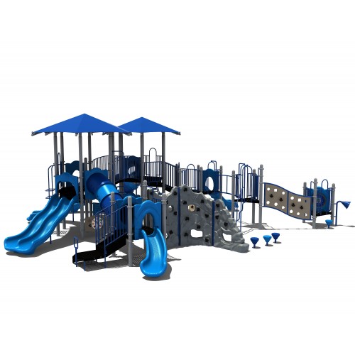 Maximo playgrounds are artistically crafted with your choice of 5.0" OD galvanized steel or aluminum support posts which are, along with all of the steel handrails, barriers, gates, and climbers, coated with a baked-on polyester powder coat finish for a lifetime of protection against the elements. All steel decking and stairs are encased in a longĀlasting PVC coating. The three-dimensional plastic slides, panels, roofs, and climbers are rotationally molded using virgin compounded resins that feature greater UV breakdown resistance over dry blended resins.The HOPE sheet plastic climbers and activities are specifically manufactured at the factory for high-quality control and not purchased from a supplier.