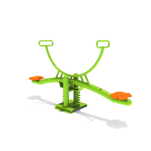 Name: Standing Arch Seesaw Series: Spring Riders Age Group: 2-12 # of Play Activities: Child Capacity: 2 Use Zone: 20'-7" x 13'-11" Max Fall Height: 1'-8" Equipment or Structure Size: 8'-7" x 1'-11" x 4'-6" Structure Weight 266.76